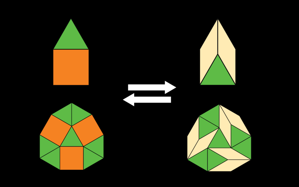 This question led to what Romero and Rona call the flipping conjecture, which explores how one tiling can be transformed into another through small, local rearrangements of pentagons. From this playful, pattern-based idea emerged rigorous proofs of several conservation laws—mathematical rules showing that certain quantities remain invariant across all valid tilings of the same outline. The work highlights how hands-on visual exploration, like that encouraged in Tile Farm Studio, can lead naturally to publishable mathematics and deep theoretical insight.