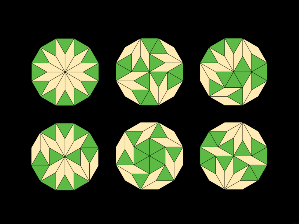 Jack Mattson, a student at Caltech, used Tile Farm as inspiration for a research project in combinatorics—the area of mathematics concerned with counting, organizing, and understanding complex patterns. His question was simple to state yet surprisingly deep: How many different ways are there to tile a regular dodecagon using just two basic shapes shown above?