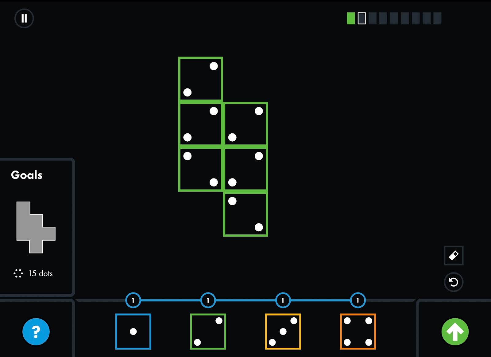 Sample Engineer It puzzle where students apply their understanding of multiples of 2, addition facts, and spatial reasoning to build dotted patterns that meet specific design goals.